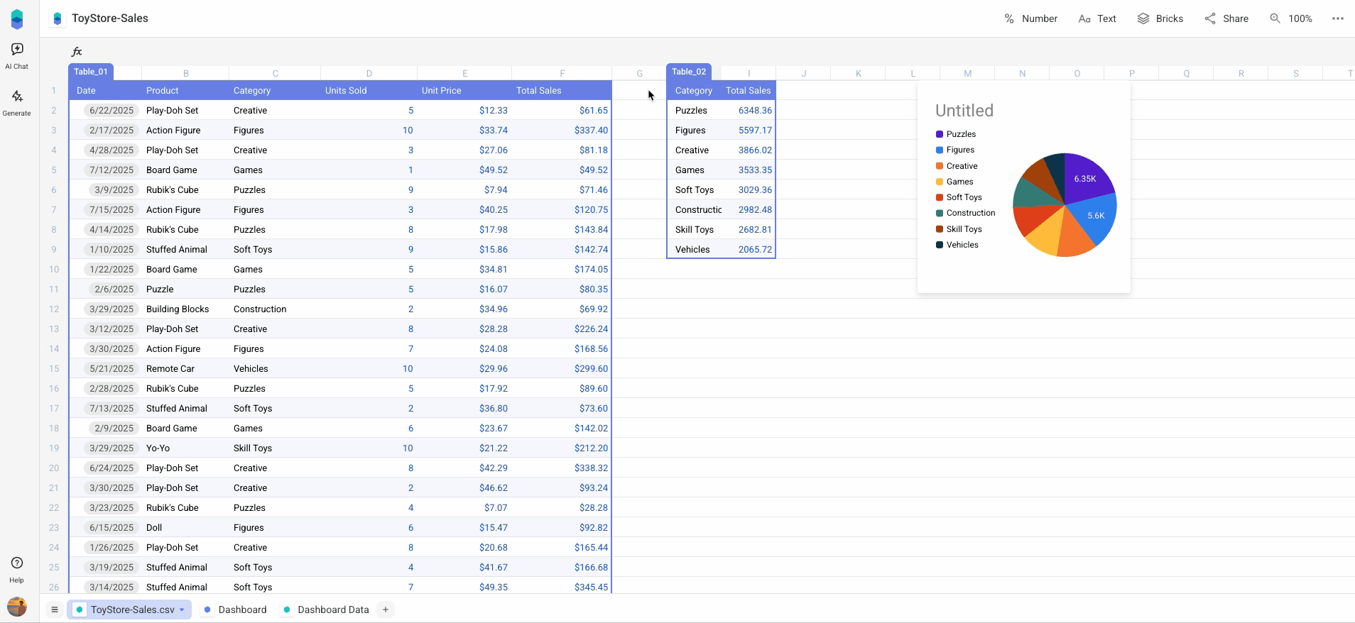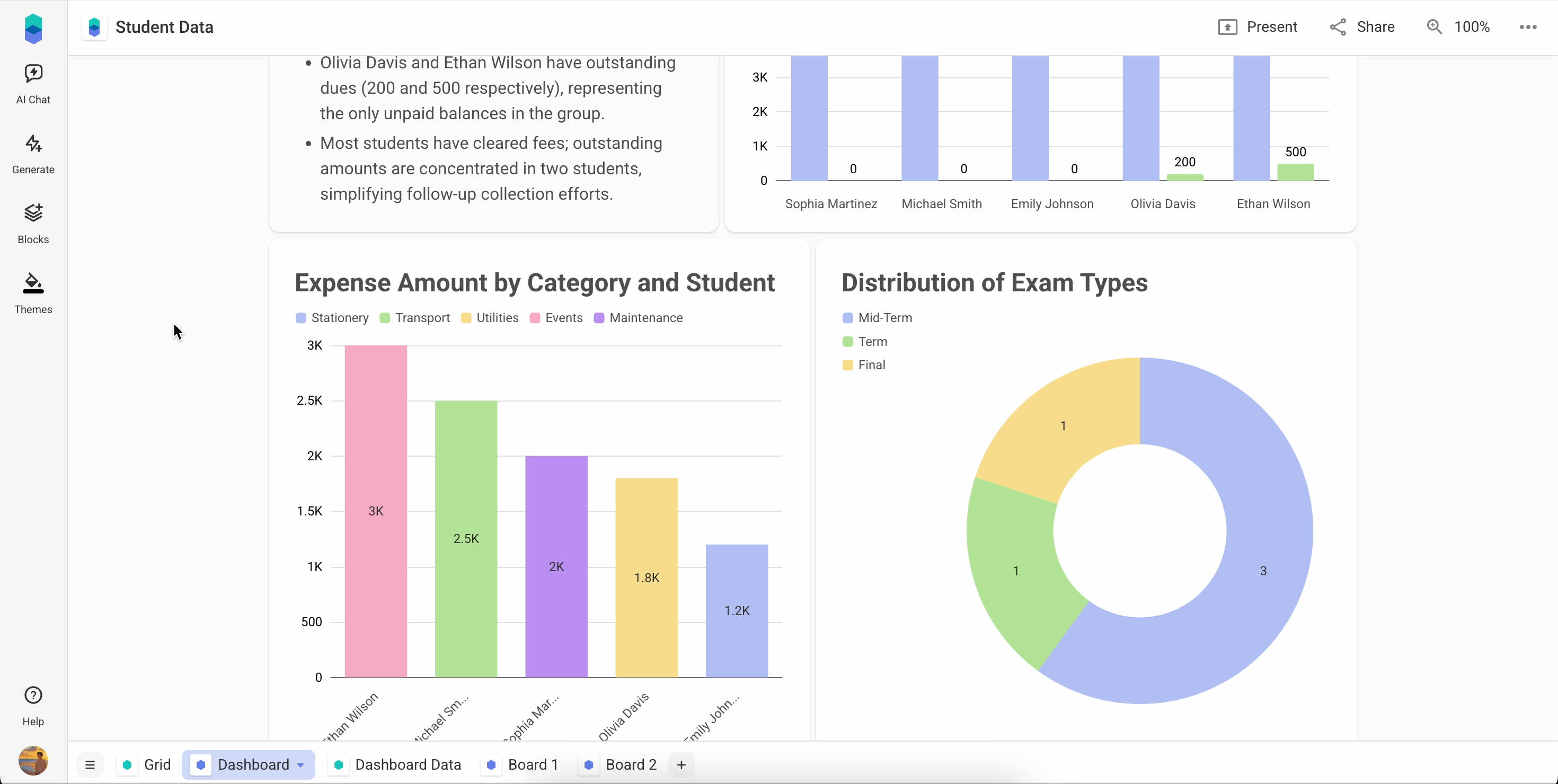 You can easily transfer charts or tables from any grid to your board. This feature is essential for maintaining a cohesive workflow, allowing you to consolidate key insights from various parts of your project into a single, interactive dashboard.- Locate the chart or table from grids that you want to send to any board within your file.