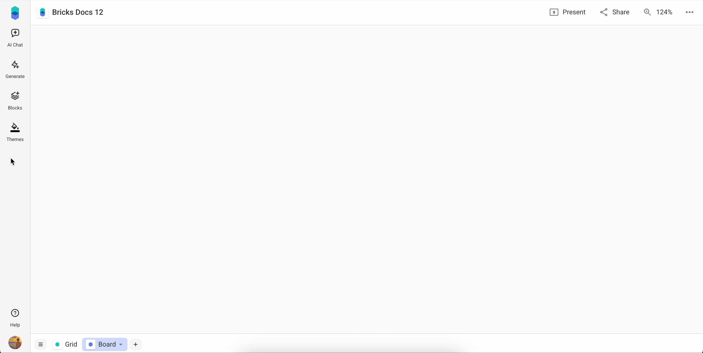 +icon for adding a block. - Choose the block type you want to insert: text, image, chart, table, or canvas.